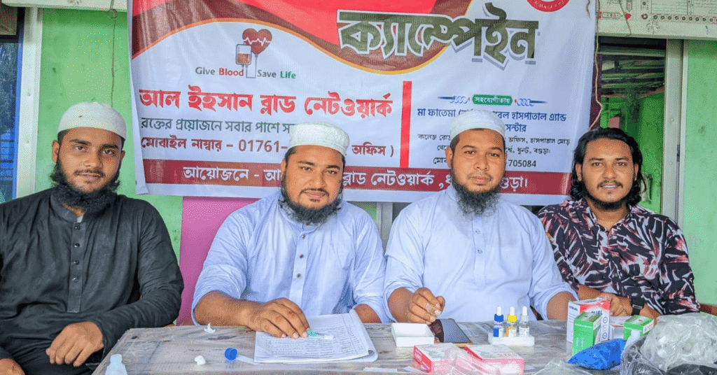 ধুনটে আল ইহসান ব্লাড নেটওয়ার্কের রক্তের গ্রুপ নির্ণয় ও রক্তদান ক্যাম্পেইন
