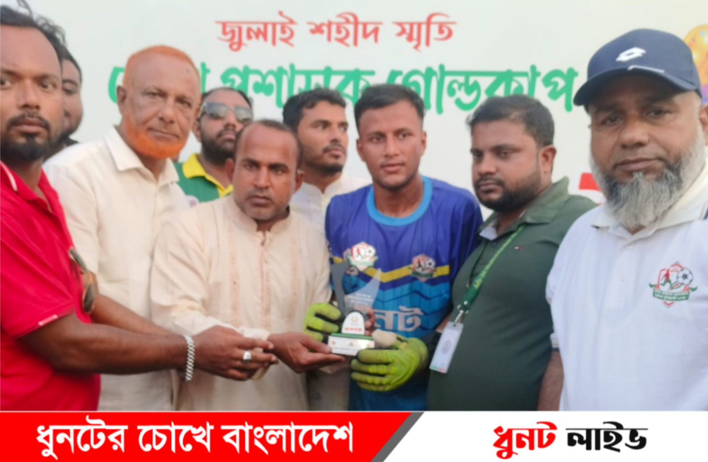 চমৎকার নৈপুণ্যের জন্য ম্যাচসেরা খেলোয়াড় নির্বাচিত হন ধুনটের গোলকিপার রকি। জেলা ক্রীড়া অফিসার আলমগীর হোসেন তার হাতে ‘ম্যান অব দ্যা ম্যাচ’ পুরস্কার তুলে দেন।