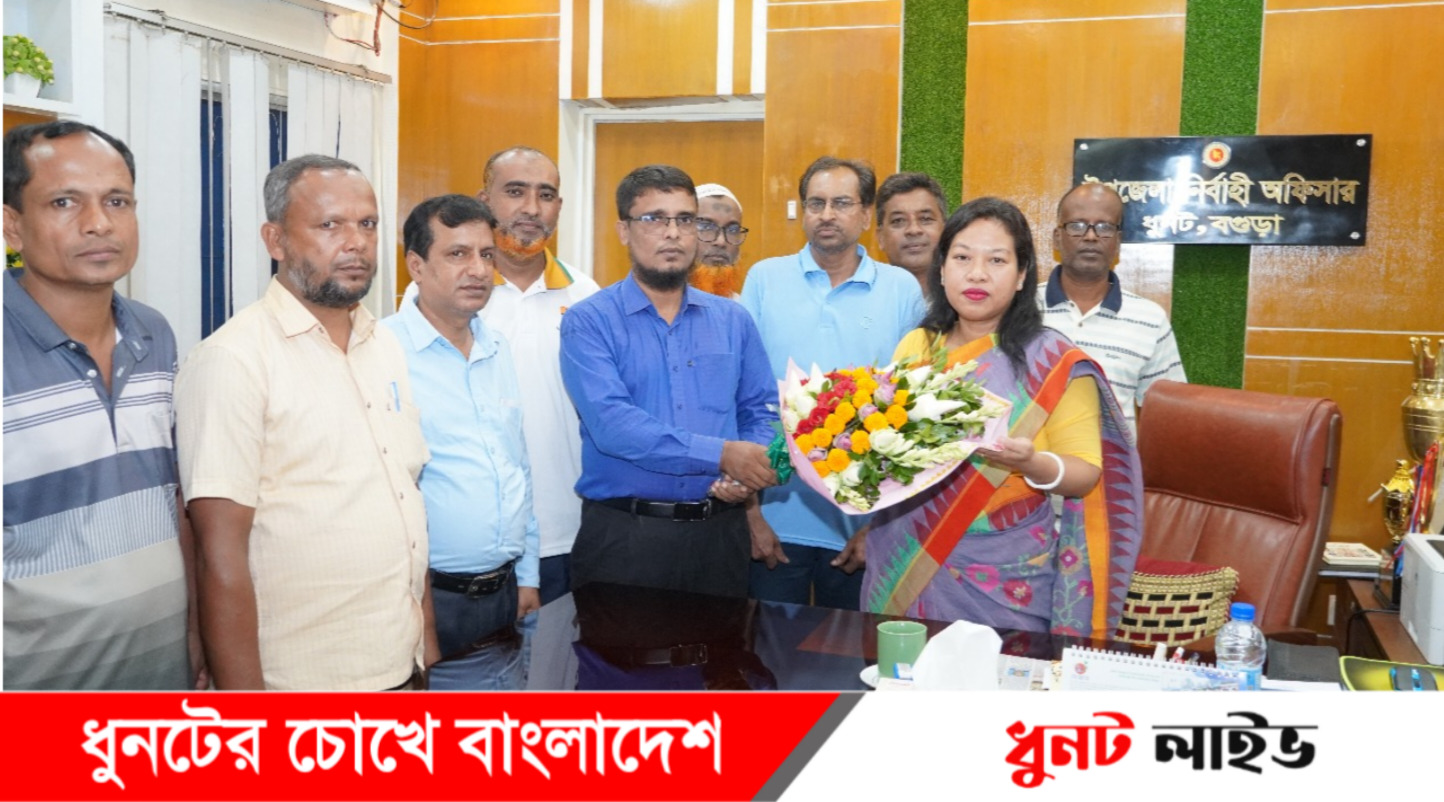 ধুনটে নবাগত ইউএনওকে ফুলেল সংবর্ধনা