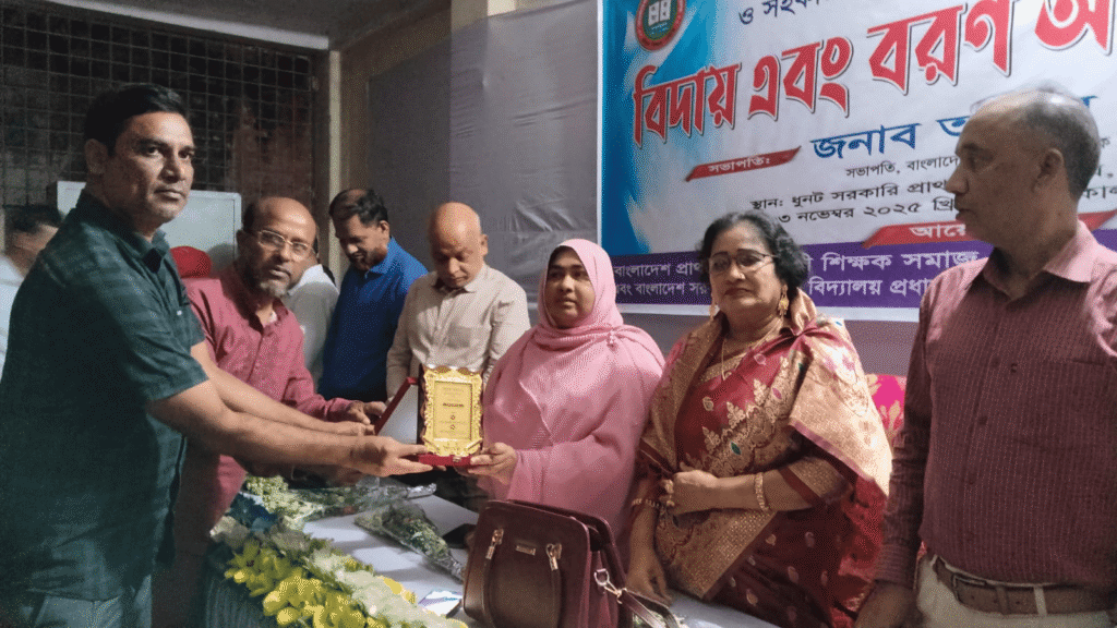বগুড়ার ধুনট উপজেলা প্রধান শিক্ষক সমিতি ও প্রাথমিক সহকারী শিক্ষক সমাজের উদ্যোগে শিক্ষা অফিসার ও সহকারী শিক্ষা অফিসারদের বিদায় ও বরণ অনুষ্ঠান অনুষ্ঠিত হয়েছে।