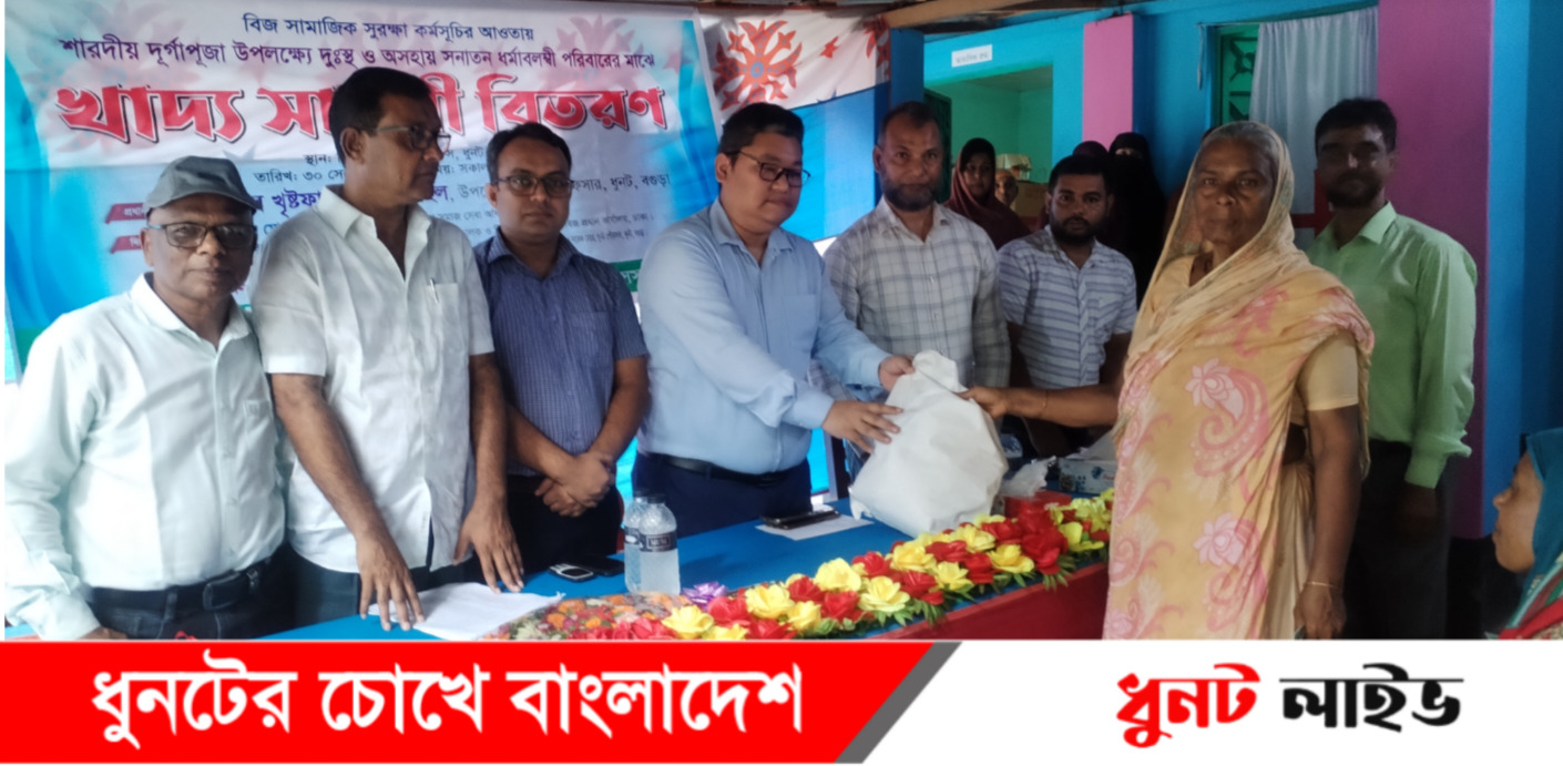 বগুড়ার ধুনটে বাংলাদেশ এক্সটেনশন এডুকেশন সার্ভিসেস (বিজ)-এর সামাজিক সুরক্ষা কর্মসূচির আওতায় শারদীয় দুর্গাপূজা উপলক্ষে দুঃস্থ ও অসহায় সনাতন ধর্মাবলম্বী পরিবারের