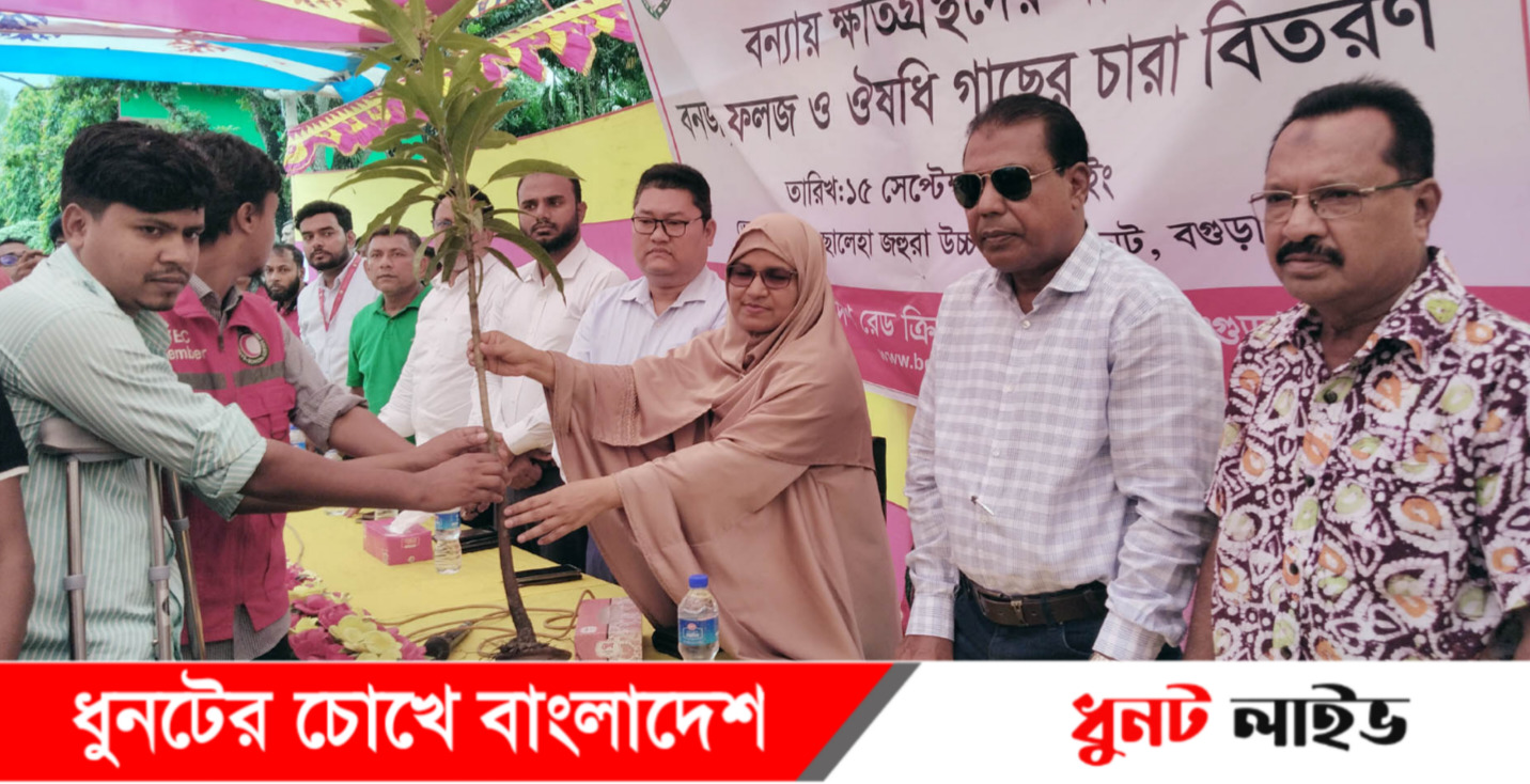 ধুনটে বন্যায় ক্ষতিগ্রস্তদের মাঝে গাছের চারা বিতরণ